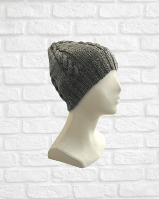 Hand knitted 100% Wool Beanie- Grey